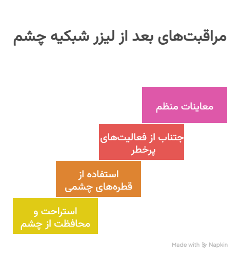 موفقیت لیزر شبکیه چشم تنها به مهارت پزشک بستگی ندارد، بلکه بخش عمدهای از آن به رعایت دقیق مراقبتهای پس از عمل توسط بیمار مربوط میشود. این مراقبتها برای جلوگیری از عوارض احتمالی و تسریع فرآیند بهبودی بسیار حیاتی هستند.